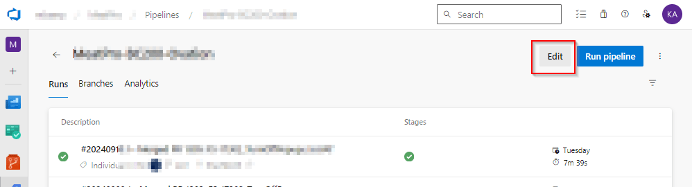 Project Pipeline —Select Project pipeline –> edit